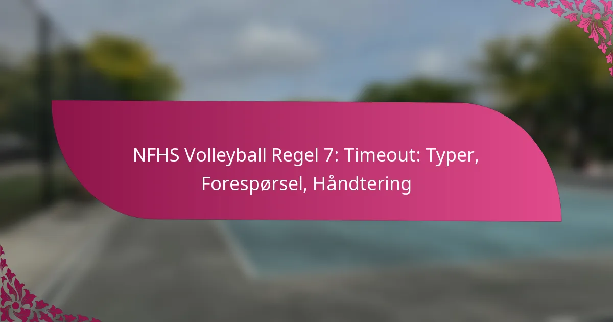 NFHS Regel 7 gir omfattende retningslinjer for håndtering av timeouter i volleyball, inkludert deres typer og ansvarsområder for spillere og dommere. Timeouter er essensielle for lagene for å samle seg, strategisere og håndtere spillerutmatting. Det finnes tre hovedtyper av timeouter – lagtimeout, offisiell timeout og skadetimeout – hver med spesifikke regler som påvirker spilldynamikken. Kjennskap til prosedyrene for å be om og håndtere disse time-outene er avgjørende for effektivt spill.